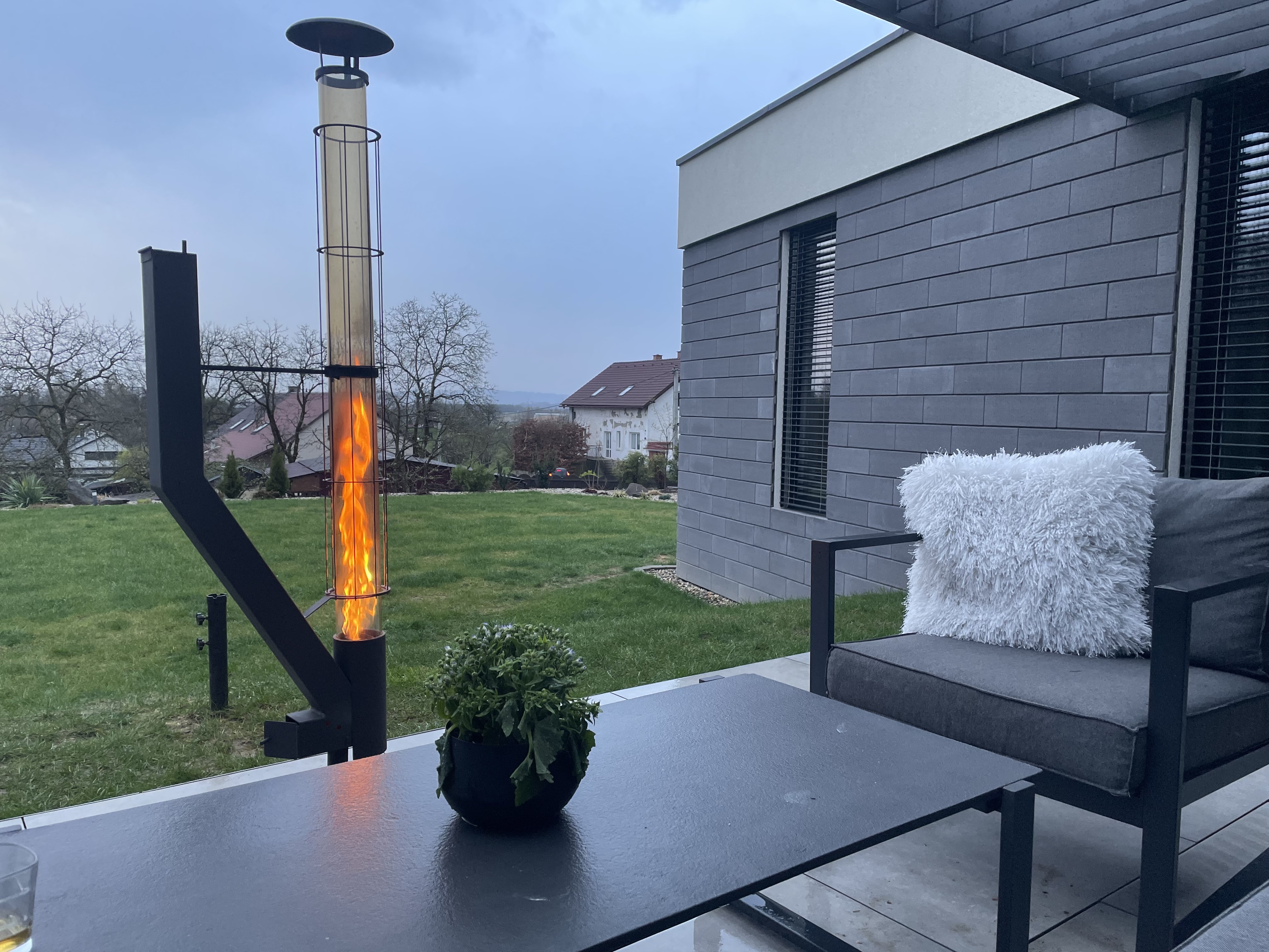 Ohřívač + kryt skla. Hledáte způsob, jak si prodloužit příjemné chvíle na terase a užívat si ji i v chladnějších měsících? Pak je pro vás terasový ohřívač na pelety ideálním řešením! Dodá Vaší terase nejen hřejivou pohodu ale i příjemné osvětlení.